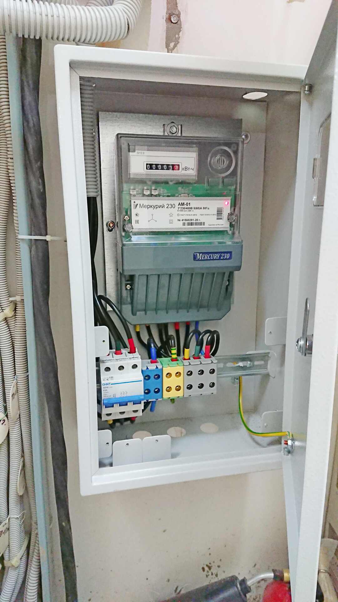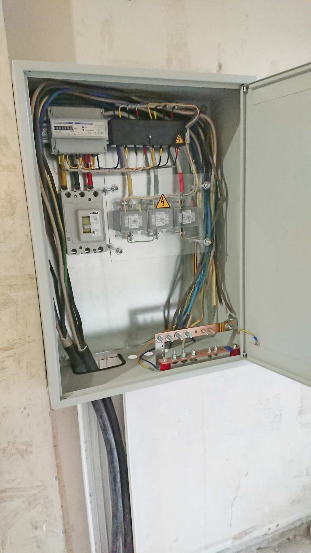 Нами собрано ВРУ в помещении заявителя, произведена коммутация с щитовой Россетей, монтаж сдан в эксплуатацию. Переоформлен договор энергоснабжения.