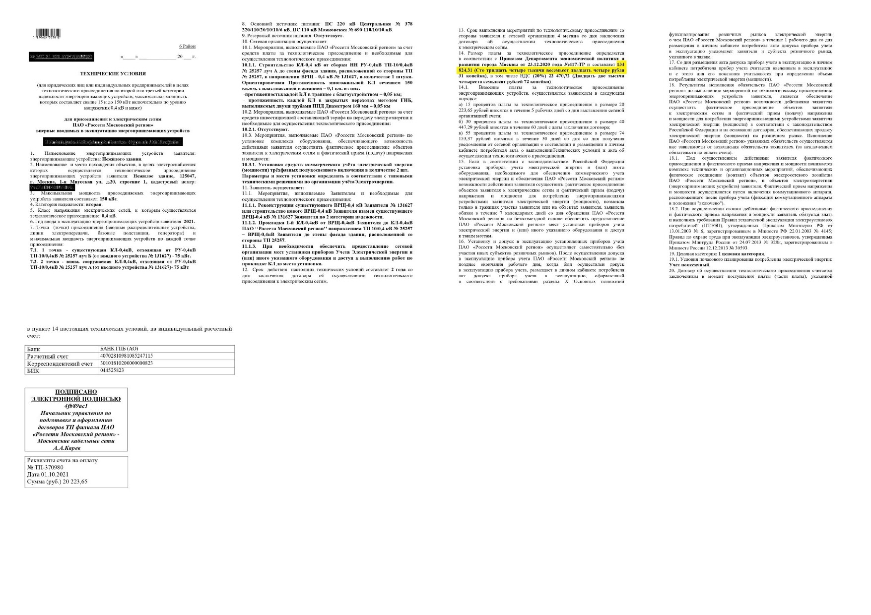 Получены ТУ Россетей на прокладку питающего кабеля (110 м) и сборку нового вводного щита силами Россетей. стоимость ТУ составила 101 тыс.